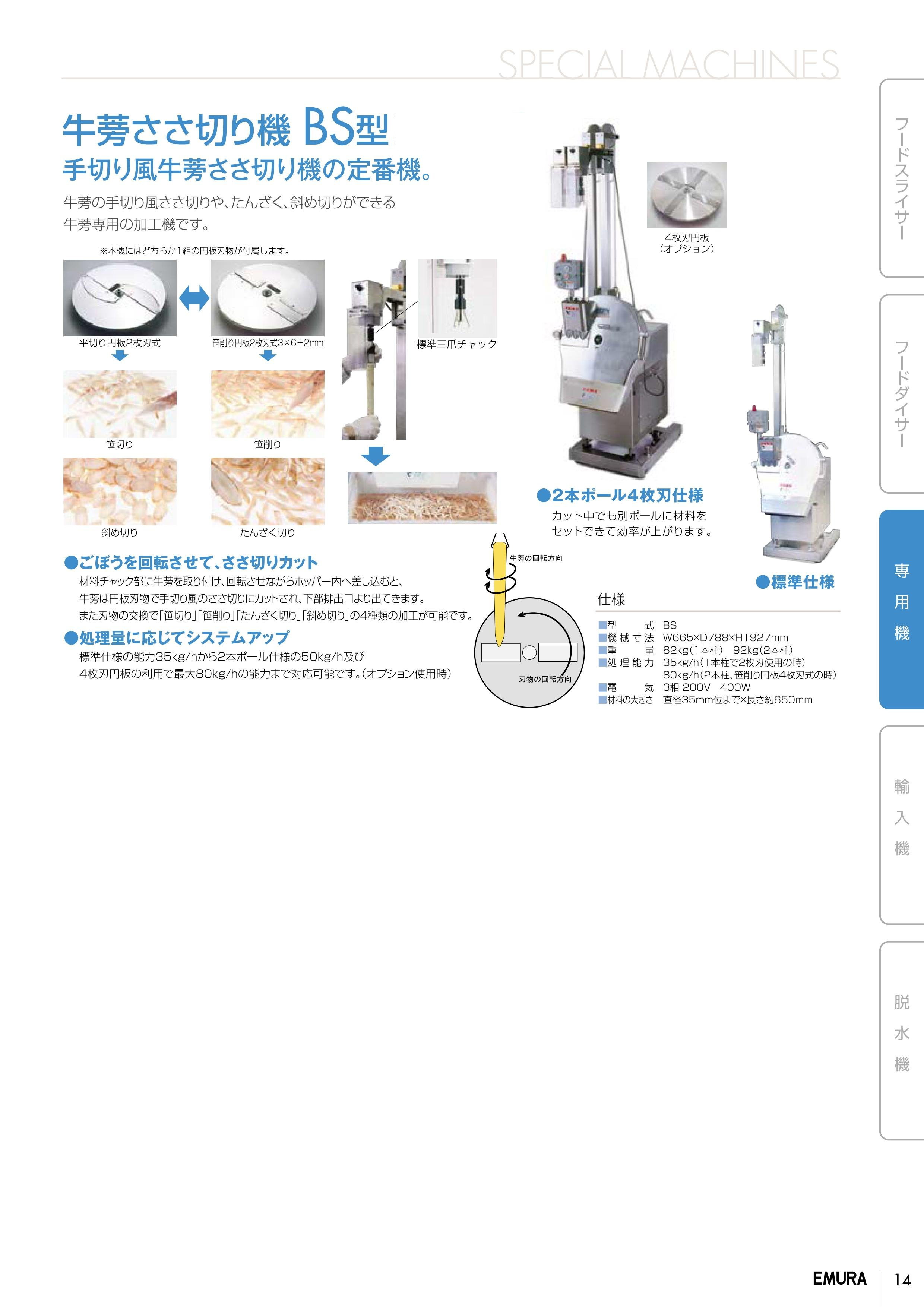 35kg/h(1本柱で2枚刃使用の時) 80kg/h(2本柱で笹削り円板4枚刃式の時) |